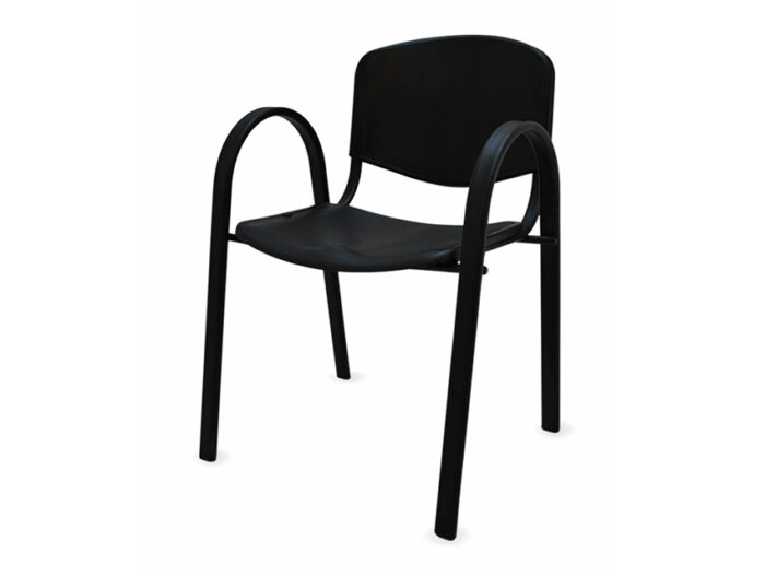 SILLA DE VISITA CON BRAZOS• ESTIBABLE.• ASIENTO Y RESPALDO EN POLIPROPILENO 4 PATAS.• ESTRUCTURA OVALADA CAL. 16* COLOR NEGRO.